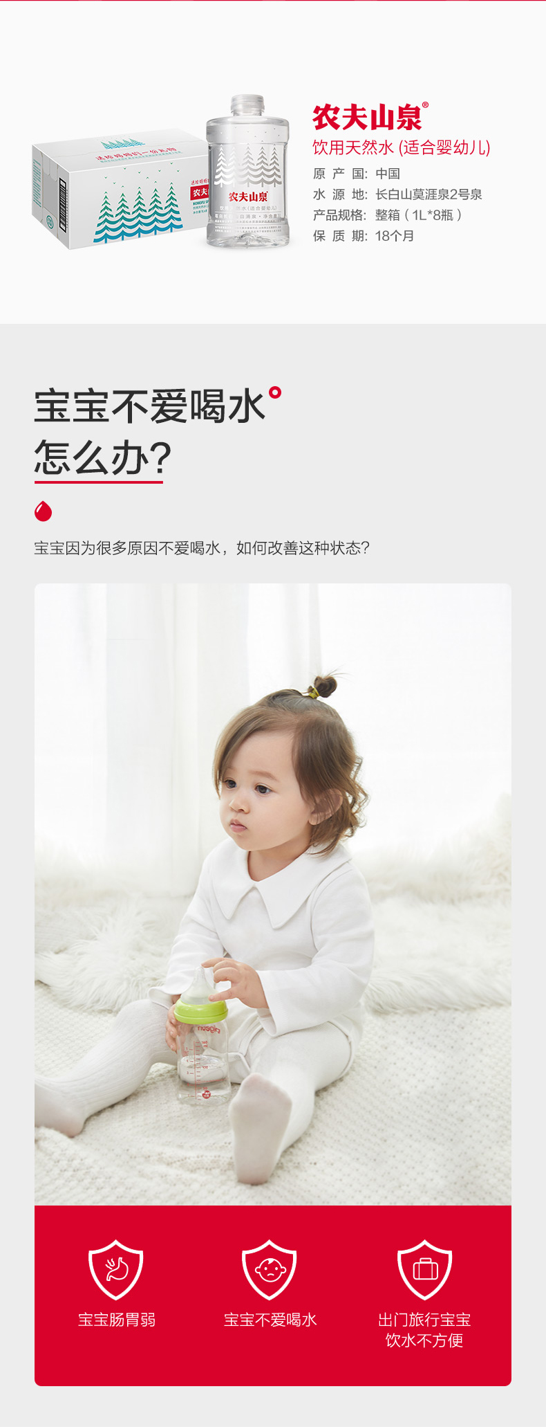 农夫山泉饮用天然水(适合婴幼儿)1L*8/箱母婴水宝宝水婴儿水