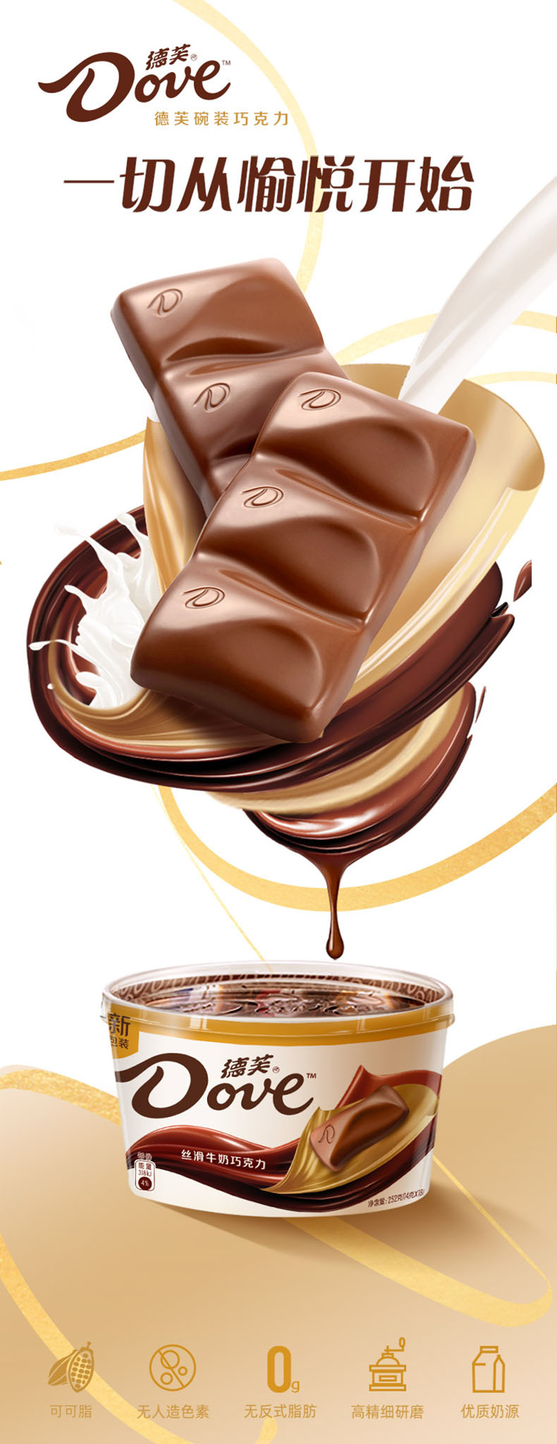 Dove/德芙丝滑牛奶巧克力252g碗装排块休闲网红糖果零食品小吃